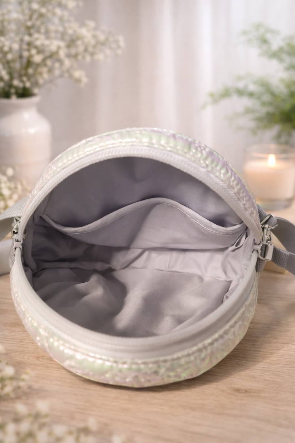 Snowy Rita is a handmade waterproof crossbody bag with a soft, puffy oval shape. Lightweight, practical and comfortable, it features a zip closure, an inner pocket and a fully adjustable strap — perfect for everyday use.